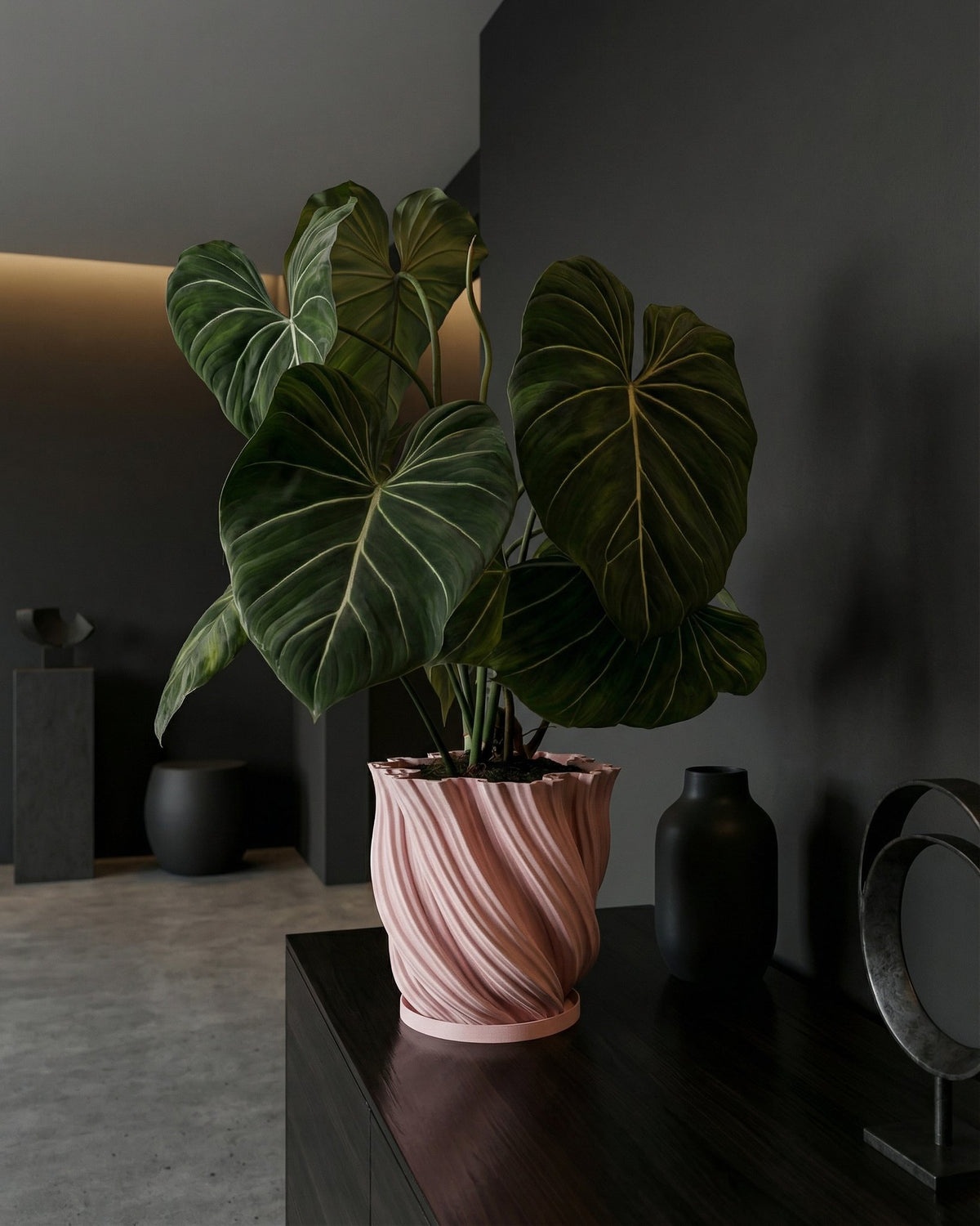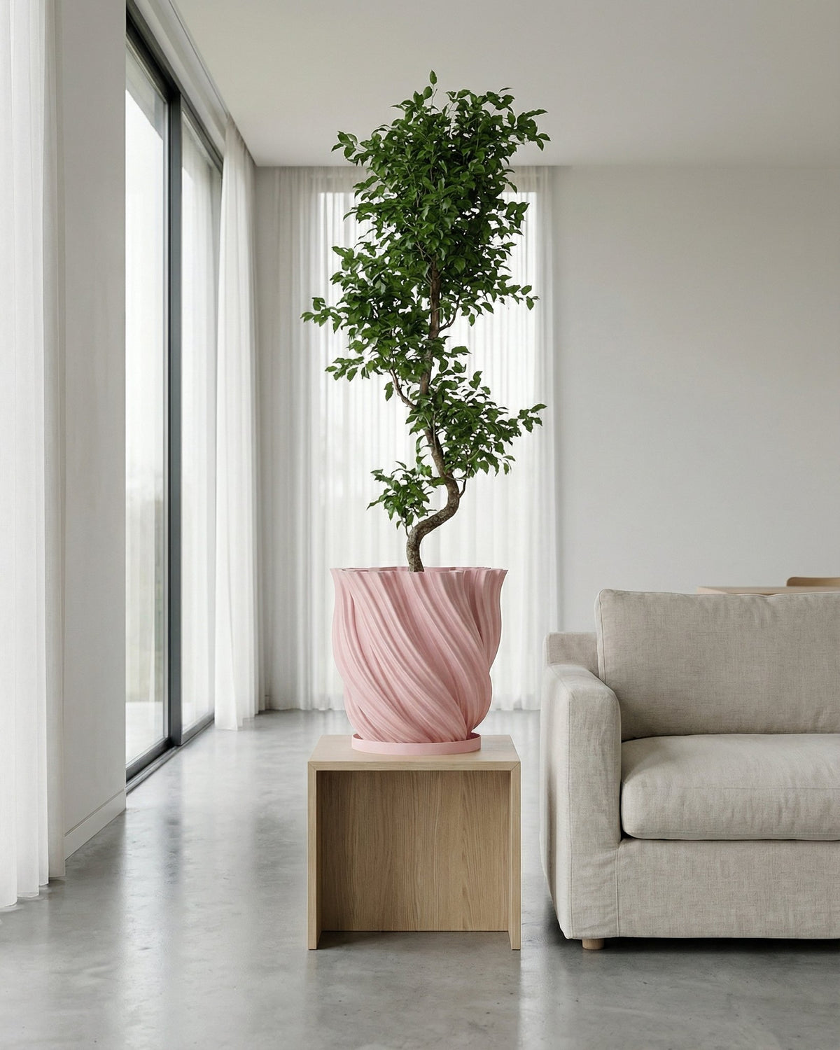 Blush dreams! This pot's soft pink hue and gently textured surface bring a touch of serene elegance to any space. Made in Canada from plant-based plastic, it's a sweet and stylish way to showcase your green friends.