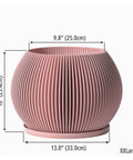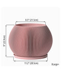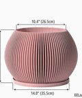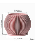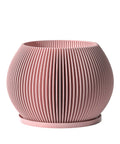 Imagine the softest blush of dawn, captured in a perfectly rounded form. This isn't just a pot; it's a whisper of color, a gentle hug for your green friends. Made in Canada from plant-based plastic, its delicate vertical lines add a touch of modern elegance to any space. Let this beauty cradle your plants and bring a serene, stylish vibe to your home.