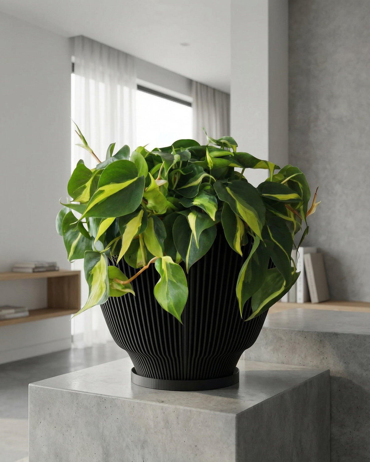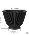 Sculptural and sleek, this pot brings a touch of modern art to your plants. The deep, rich black accentuates the vibrant greens and reds of your favorite foliage, creating a stunning contrast. Made in Canada from plant-based plastic, it's a chic and eco-conscious choice for any space.