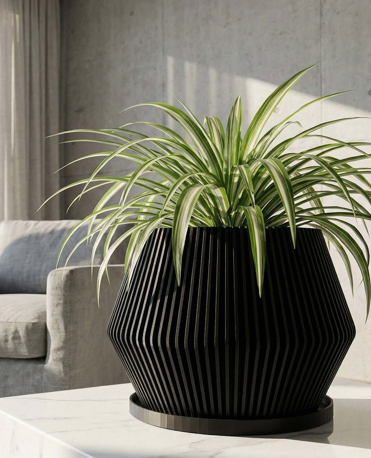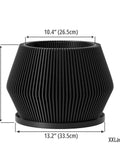 Sculptural and sleek, this pot brings a touch of modern art to your plants. The deep, rich black accentuates the vibrant greens and reds of your favorite foliage, creating a stunning contrast. Made in Canada from plant-based plastic, it's a chic and eco-conscious choice for any space.