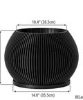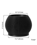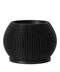 Envision a space where modern design meets eco-consciousness. This striking black planter, Made in Canada, brings a touch of bold sophistication to any room. Crafted from plant-based plastic, its unique slatted texture creates captivating shadows, adding depth and intrigue. It's a statement piece that whispers elegance and responsibility.
