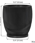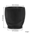 Imagine the drama of shadows dancing across a textured, dark canvas. This pot, Made in Canada from plant-based plastic, brings a touch of modern sculpture to your green companions. Its deep, rich tone and subtly rippled form create a captivating stage for your plants to shine.