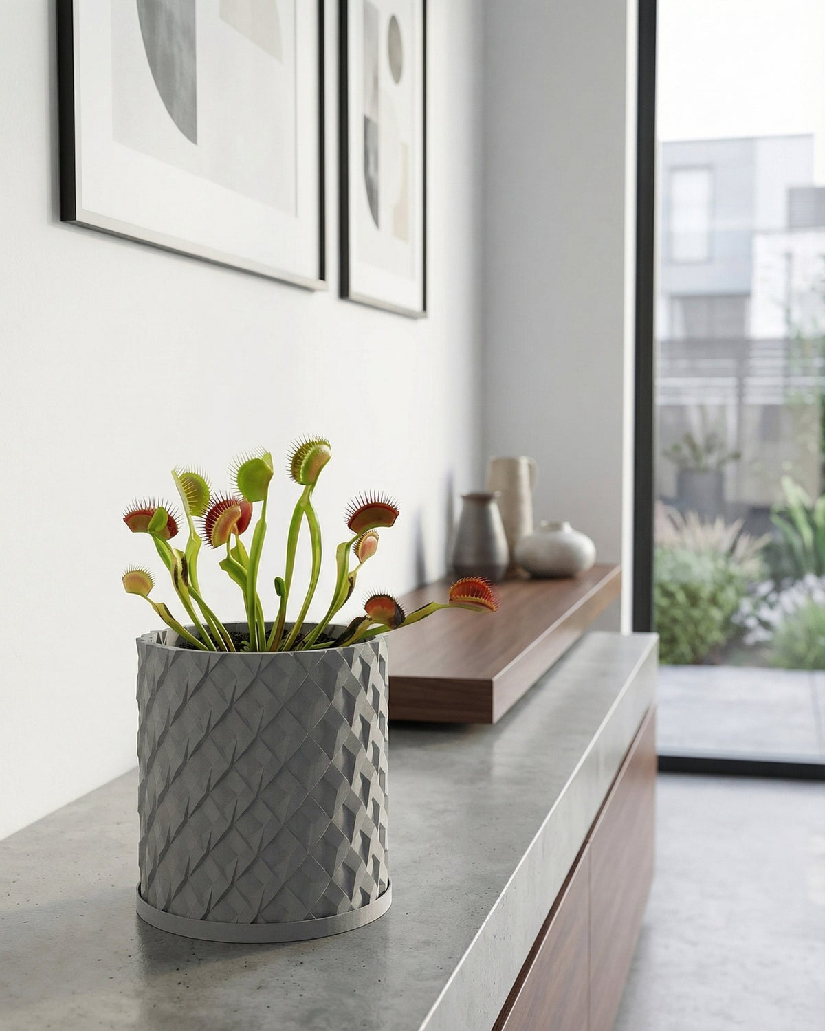 Elevate your plant game with our stylish and versatile plant pot. Crafted with a unique woven texture, this pot adds a touch of modern elegance to any space. The neutral gray hue complements a variety of plant types and interior styles, making it the perfect home for your leafy friends. Inspired by the calming tones of nature, this pot brings a sense of serenity and sophistication to your indoor garden. Let your plants thrive in style with this eye-catching and durable pot.