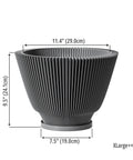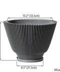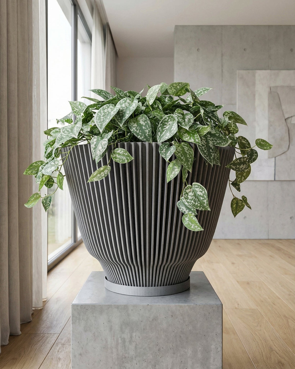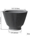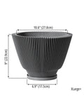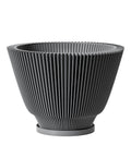 Sculpted shadows dance across its fluted form, a symphony of greys that whispers modern elegance. This beauty, Made in Canada from plant-based plastic, brings a touch of sophisticated drama to any space. Let its subtle, rhythmic texture be the grounding element your greenery deserves.