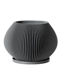 Sculpted shadows dance across its fluted form, a symphony of greys that whispers modern elegance. This beauty, Made in Canada from plant-based plastic, brings a touch of sophisticated drama to any space. Let its subtle, rhythmic texture be the grounding element your greenery deserves.