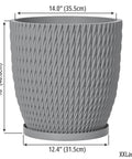 Elevate your plant game with our stylish and versatile plant pot. Crafted with a unique woven texture, this pot adds a touch of modern elegance to any space. The neutral gray hue complements a variety of plant types and interior styles, making it the perfect home for your leafy friends. Inspired by the calming tones of nature, this pot brings a sense of serenity and sophistication to your indoor garden. Let your plants thrive in style with this eye-catching and durable pot.