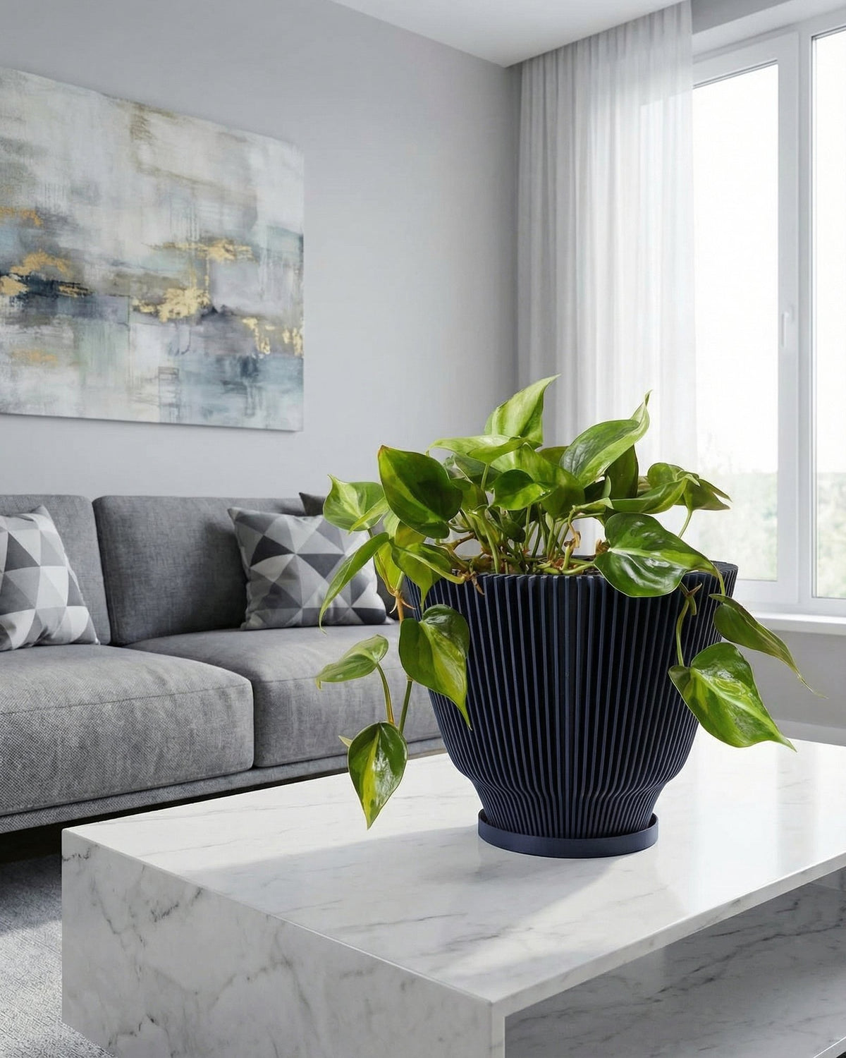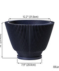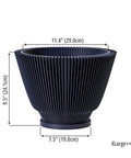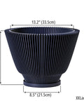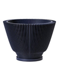 Midnight dreams bloom in this fluted beauty. Imagine the shadows playing across its deep, dark surface, a striking contrast to the vibrant green it holds. Made in Canada from plant-based plastic, it's a little touch of modern magic for your favorite plant.