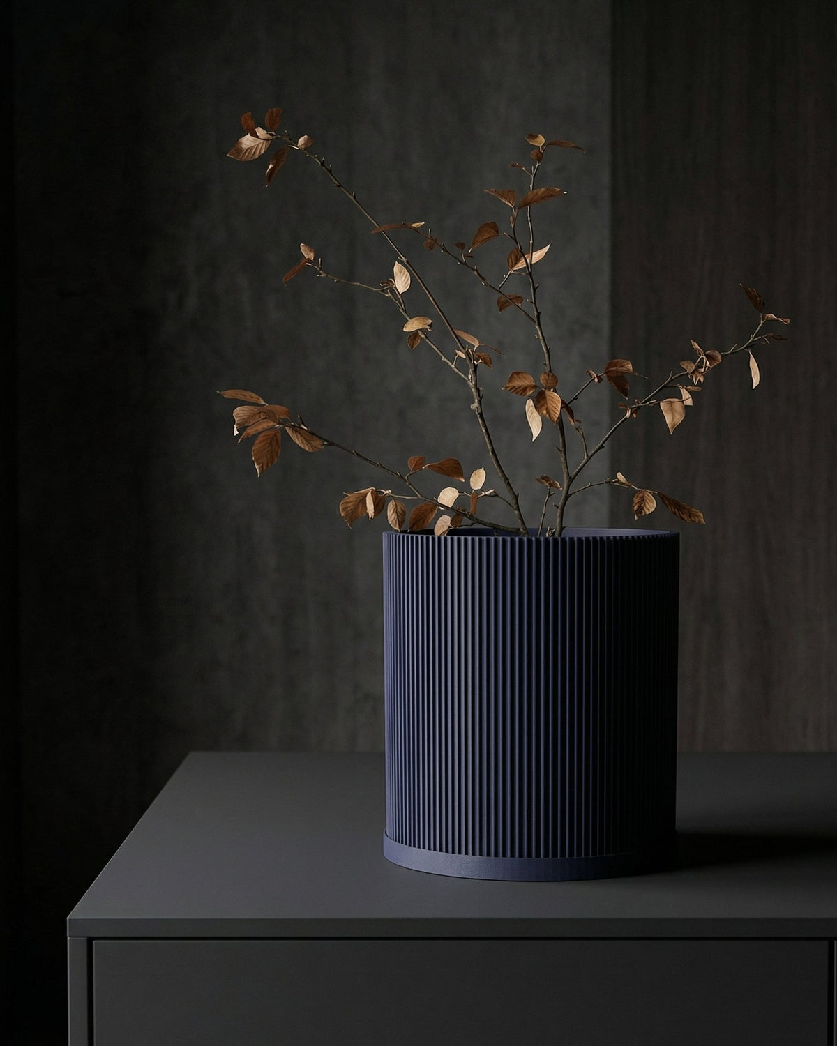 Elevate your plant display with our modern ribbed planter, a stylish home for your beloved greenery. The sleek, vertical lines add a touch of contemporary elegance to any space, while the deep, rich navy hue complements a variety of plant types and interior styles. Inspired by the calming rhythm of nature, this pot brings a sense of serenity and sophistication to your plant collection, creating a harmonious blend of design and botanical beauty. Perfect for plant enthusiasts seeking a chic and functional way to showcase their leafy friends.