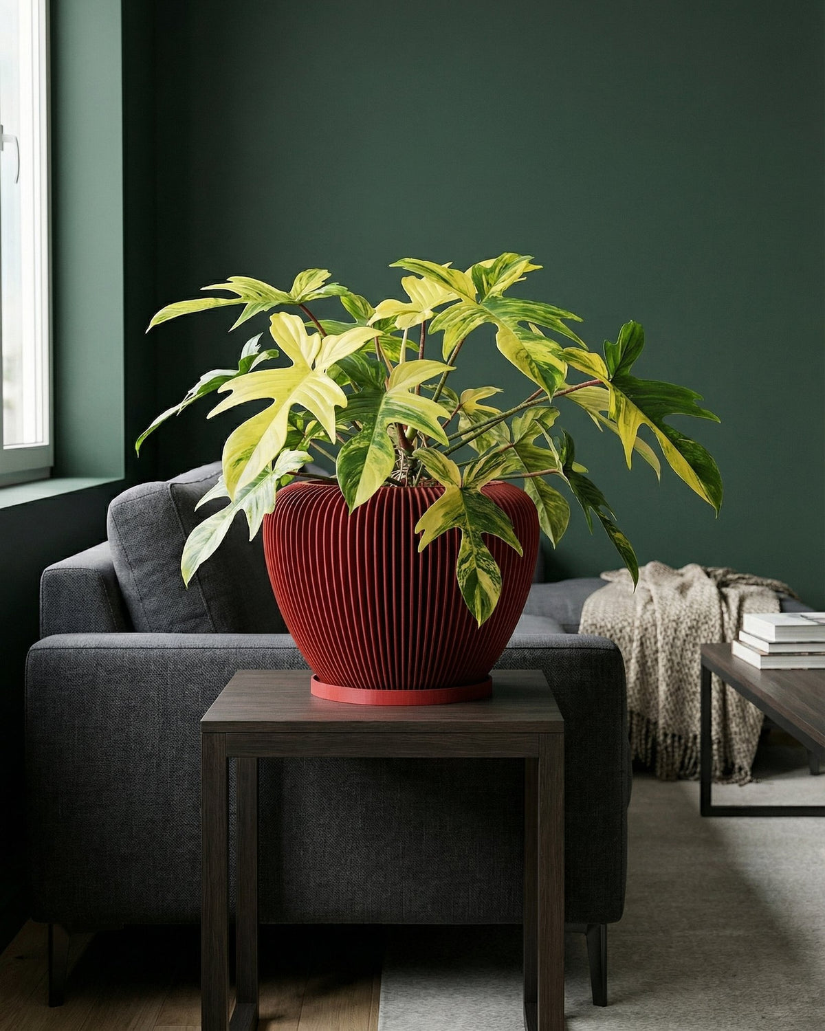 Imagine the sun streaming in, catching the curves of this beauty! Made in Canada from plant-based plastic, its rich, earthy red brings a warm, grounded vibe to any space. The slatted design adds a playful rhythm, a modern twist that feels both organic and totally chic.