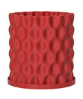 Imagine the warmth of a sunset, captured in a pot. This vibrant, coral-toned planter features a mesmerizing, rounded geometric pattern that dances with light and shadow. Made in Canada from plant-based plastic, it's a burst of happy color for your favorite green friend.
