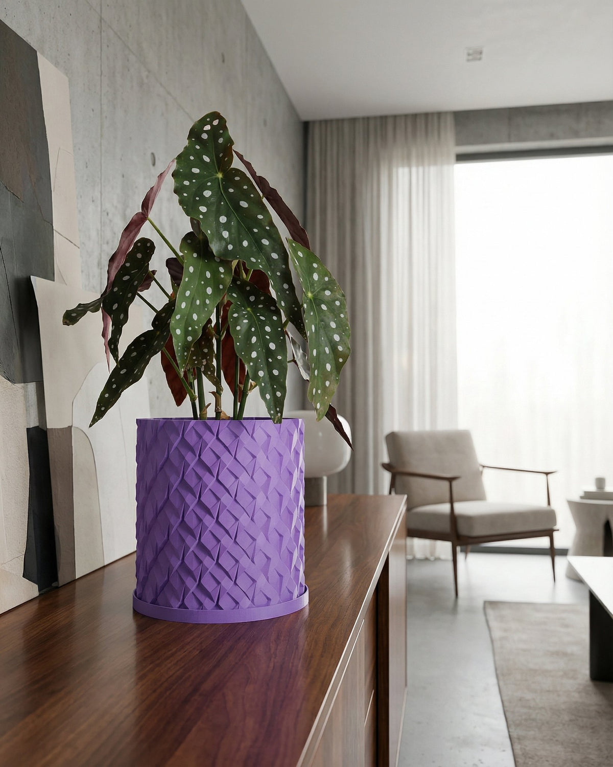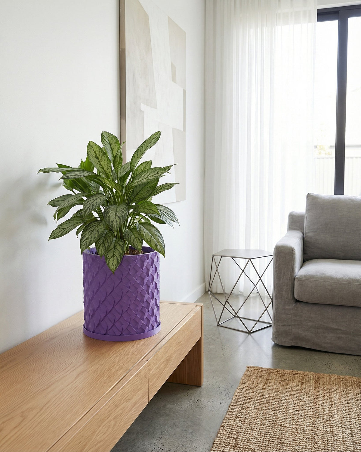 Elevate your plant game with our stylish and eye-catching plant pot! Designed with plant lovers in mind, this pot adds a touch of modern elegance to any space. The unique woven texture is inspired by the intricate patterns found in nature, creating a visually stunning piece that complements your greenery. The vibrant purple hue is a nod to the playful side of gardening, bringing a pop of color and personality to your indoor jungle. Crafted from durable materials, this pot is not only beautiful but also built to last, ensuring your beloved plants thrive in style.