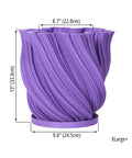 Imagine a splash of vibrant color breathing life into your space! This eye-catching pot, Made in Canada from plant-based plastic, features a mesmerizing spiral design that dances with light and shadow. The unique purple hue adds a playful yet sophisticated touch, perfect for showcasing your favorite greenery and brightening any corner of your home.