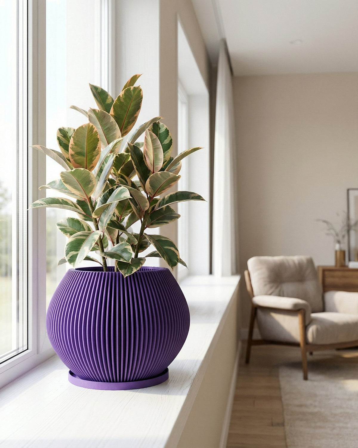 Imagine the softest lavender fields at twilight... now picture that color, spun into a pot. This beauty, Made in Canada from plant-based plastic, features a modern, fluted design that catches the light just so. It's a dreamy touch for any space.
