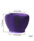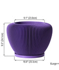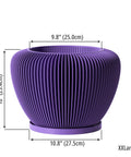 Imagine a burst of regal charm right in your living space! This vibrant purple pot, Made in Canada from plant-based plastic, brings a playful yet sophisticated vibe. Its unique, vertically ribbed design catches the light, creating a mesmerizing dance of shadows that elevates any plant it holds. A true statement piece that adds a pop of color and modern flair to your home.