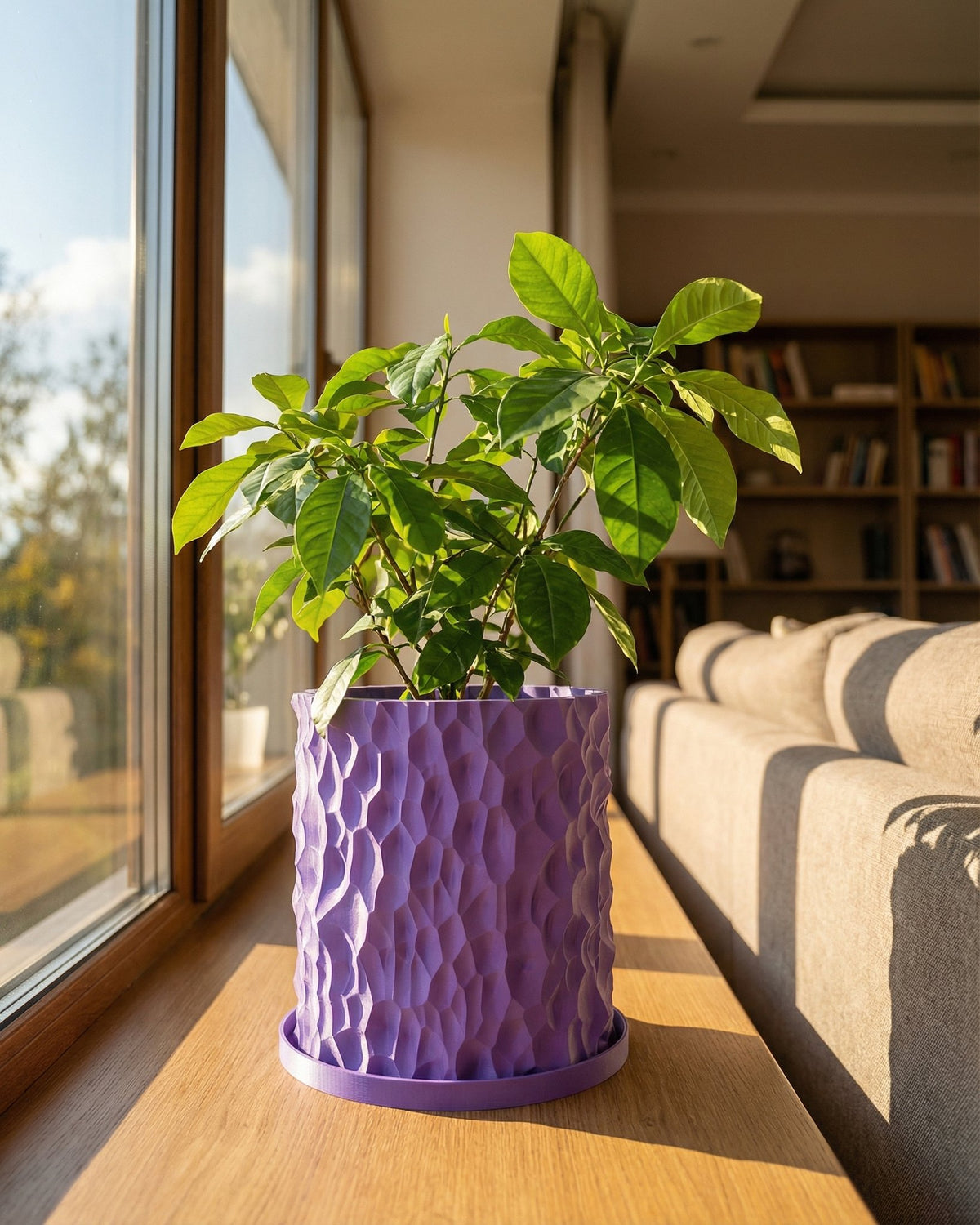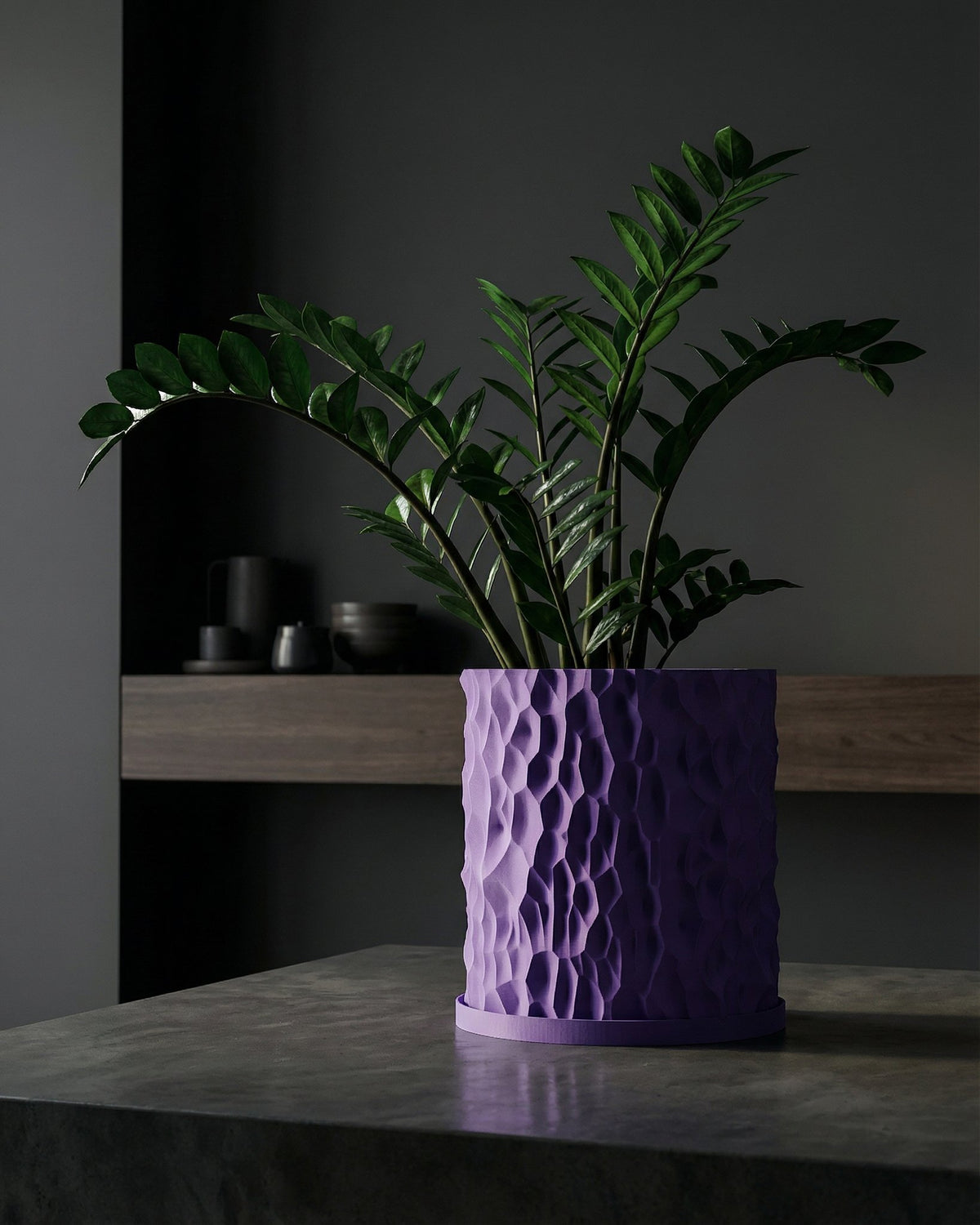Imagine a splash of lavender calm. This pot, with its captivating, faceted form, brings a serene, modern vibe to any space. Ethically 3D-printed from plant-based plastic and Made in Canada, it’s a feel-good choice that elevates your green friends.
