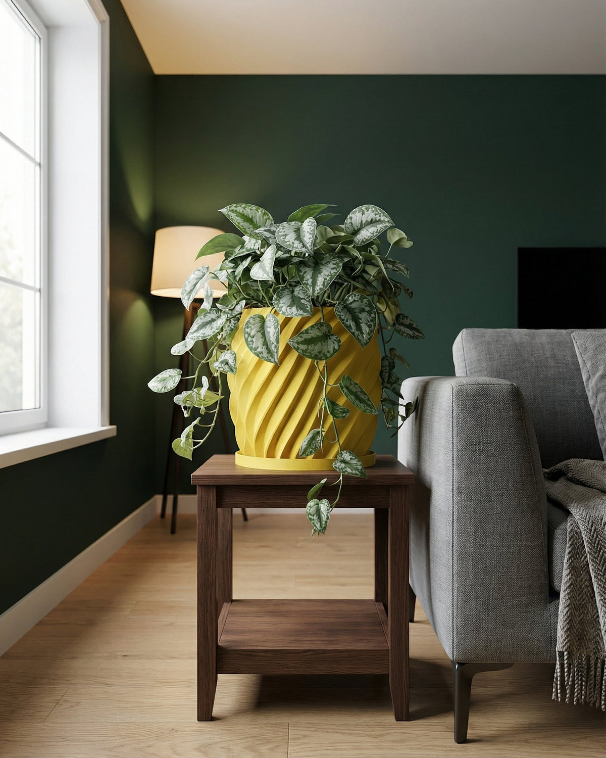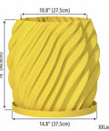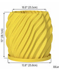 Bathed in golden light, this sunshine-yellow pot brings a burst of joy to any space. Its spiraling, sculptural form adds a playful touch, like a ray of sunshine frozen in time. Made in Canada from plant-based plastic, it's a feel-good piece that radiates happiness.