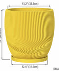 Bathed in sunshine yellow, this pot brings a burst of happy vibes to any space! The gentle curves ripple around its form, catching the light and adding a playful touch. Made in Canada from plant-based plastic, it's a feel-good choice that's as kind to the planet as it is to your plants.