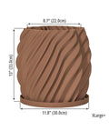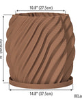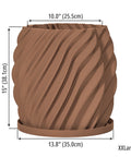 Imagine sunshine warming terracotta, a gentle swirl inviting a touch. This pot, Made in Canada from plant-based plastic, brings a grounded, natural elegance to any space. Its soft curves play with light, creating a sense of calm and organic beauty.