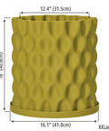 Bathed in a soft, inviting glow, this pot whispers tales of cozy evenings and sun-drenched mornings. Its mellow, chartreuse hue brings a touch of nature's tranquility indoors, a gentle pop of color that complements any space. The unique, dimpled texture adds a playful, tactile dimension, inviting you to reach out and feel the subtle dance of light and shadow. Made in Canada from plant-based plastic, it’s a little touch of sunshine, responsibly crafted.