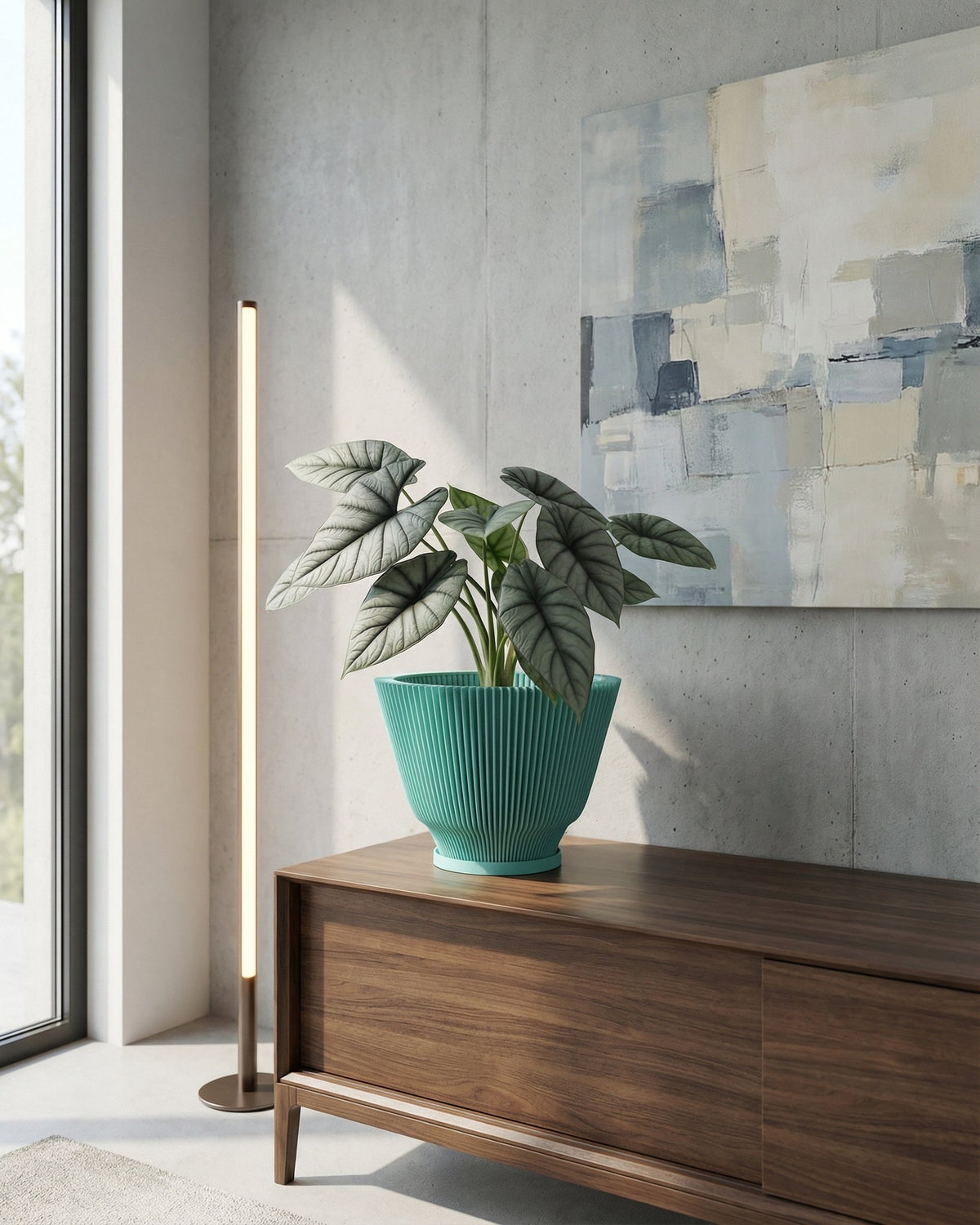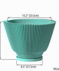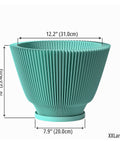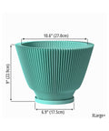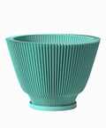 Imagine a splash of serene teal bringing a calming wave to your living space. This beautifully fluted pot, Made in Canada from plant-based plastic, adds a touch of modern elegance with its clean, vertical lines and gently curved silhouette. It's a breath of fresh air, designed to let your plants—and your decor—thrive.