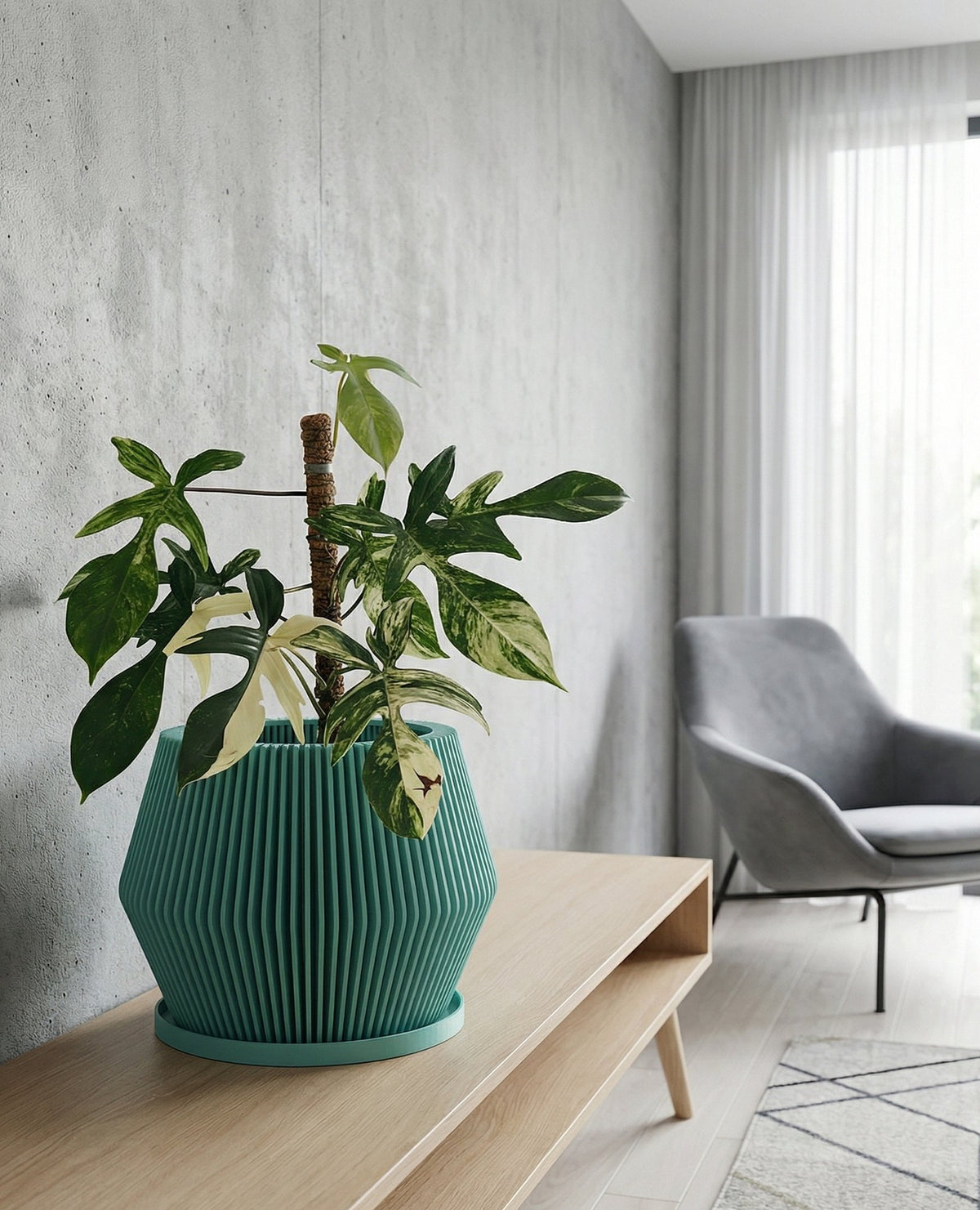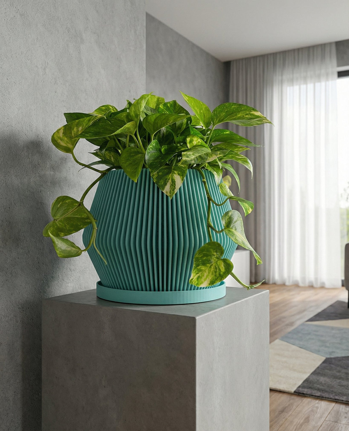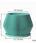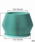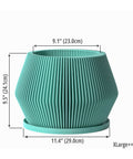 Imagine a splash of serene teal bringing a calming wave to your living space. This beautifully fluted pot, Made in Canada from plant-based plastic, adds a touch of modern elegance with its clean, vertical lines and gently curved silhouette. It's a breath of fresh air, designed to let your plants—and your decor—thrive.