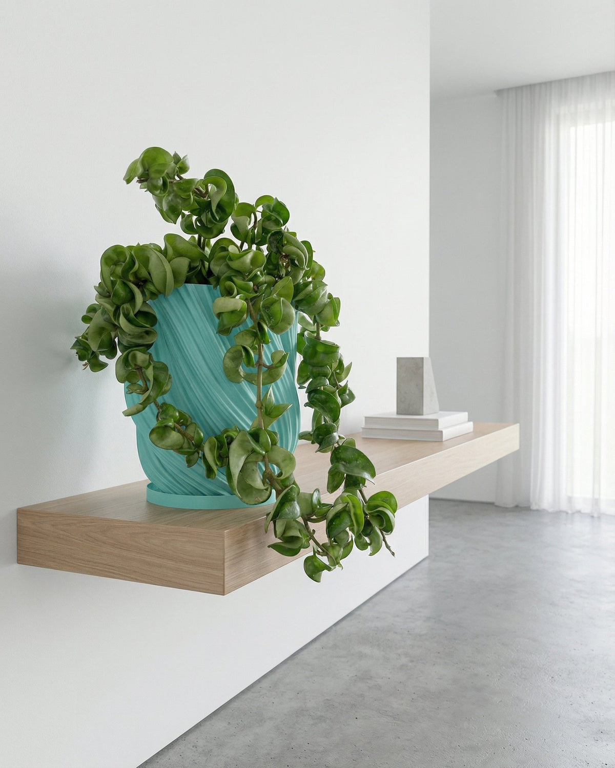 Imagine a splash of cool mint, a gentle wave frozen in time. This isn't just a pot; it's a breath of fresh air for your favorite green friend. Made in Canada from plant-based plastic, it brings a touch of modern serenity to any space. The unique, swirling texture catches the light, adding a playful, organic vibe.