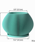 Imagine a splash of serene teal bringing a calming wave to your living space. This beautifully fluted pot, Made in Canada from plant-based plastic, adds a touch of modern elegance with its clean, vertical lines and gently curved silhouette. It's a breath of fresh air, designed to let your plants—and your decor—thrive.