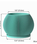Imagine a splash of fresh mint against a warm terracotta backdrop. This isn't just a pot; it's a statement. Made in Canada from plant-based plastic, its rounded form and rhythmic vertical lines bring a sense of modern calm to any space. A simple, stylish way to let your plants (and your good taste) shine.
