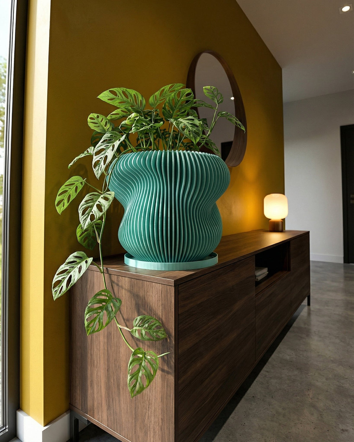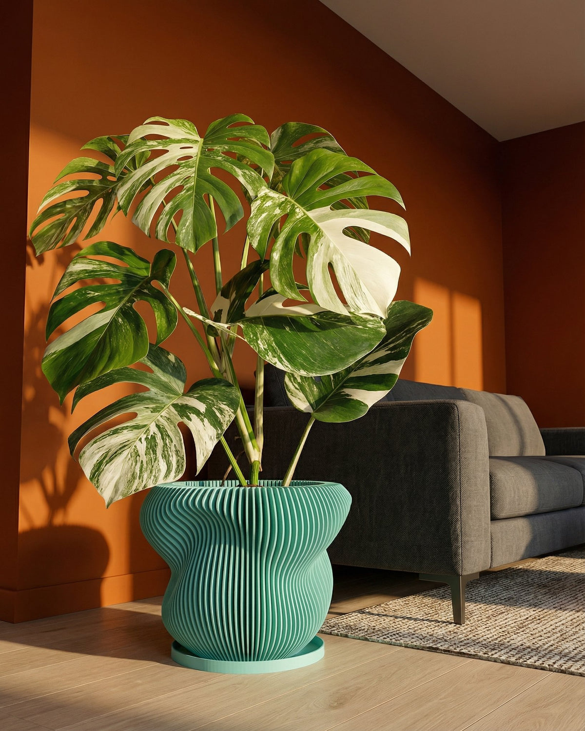 Imagine a splash of fresh mint against a warm terracotta backdrop. This isn't just a pot; it's a statement. Made in Canada from plant-based plastic, its rounded form and rhythmic vertical lines bring a sense of modern calm to any space. A simple, stylish way to let your plants (and your good taste) shine.