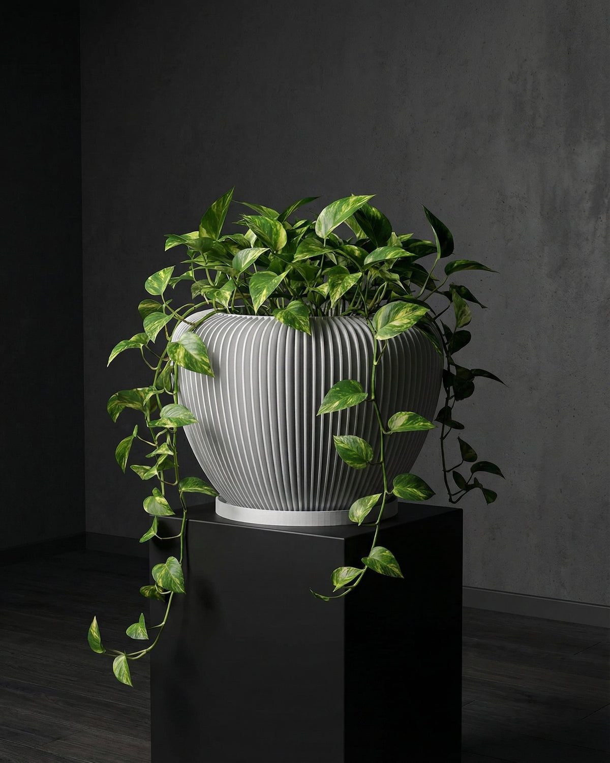 Sculptural curves meet modern cool. This pot, Made in Canada from plant-based plastic, brings a quiet elegance to any space. Its soft grey hue and fluted design create a subtle, sophisticated statement, letting your greenery truly shine.