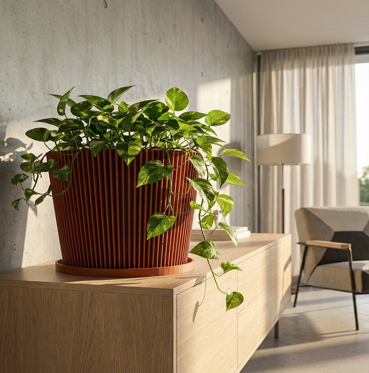 We believe in housing nature within nature. This planter is crafted from plant-based materials derived from renewable resources like corn starch and sugarcane, rather than harsh petroleum plastics. It is a sustainable choice for your indoor jungle that is kind to the earth and easy to maintain by simply wiping it clean with a damp cloth.